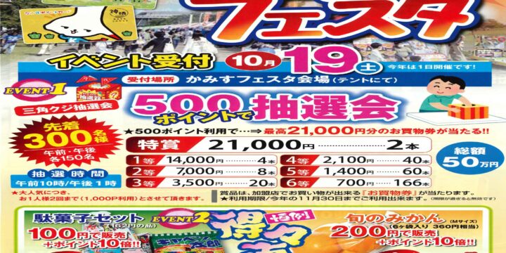 神栖市内のお馴染みのお店が、毎月10日、20日にバラエティ豊かな商品でお得な「ポイント倍セール」を開催中!神栖市の定期イベント(神栖フェスタなど)でのイベントも毎回大好評!!お子さんと、ご家族と、友人と、楽しみながらお得にまちを盛り上げましょう!!